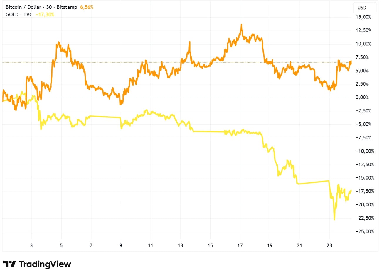 Bitcoin und Gold schlagen unterschiedliche Pfade eine