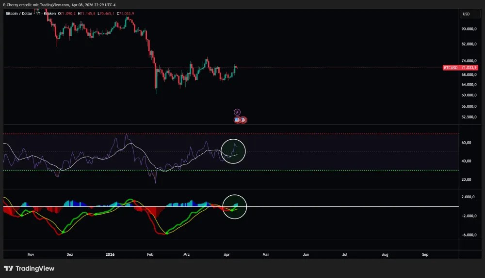 💡 Die Indikatoren im Tageschart wirken aktuell optimistisch. Sowohl der RSI als auch der MACD haben ein bullisches Crossover ausgebildet. Das Momentum im MACD ist auf Tagesbasis ansteigend bullisch.