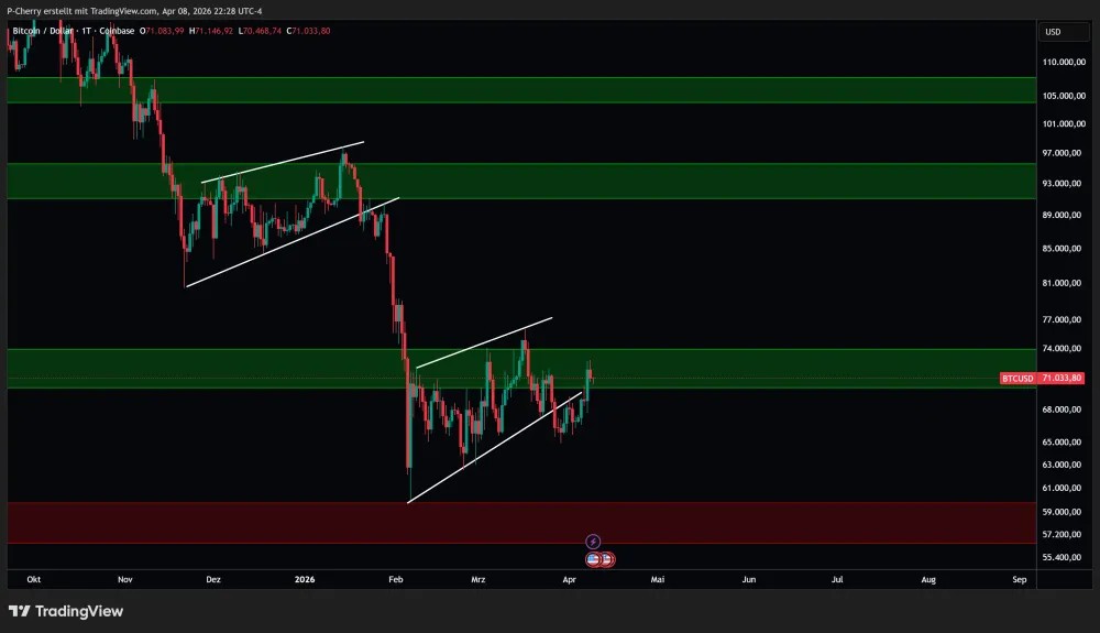 Der Bitcoin-Kurs zeigte zuletzt wieder Stärke und stieg auf rund 72.900 US-Dollar an. Momentan befindet sich der $BTC-Preis wieder im Resistenzbereich – siehe grüner Kasten. Ein nachhaltiger Ausbruch darüber würde das Chartbild kurzfristig wieder aufhellen. Scheitert Bitcoin jedoch erneut, wäre dies ein Zeichen von Schwäche.