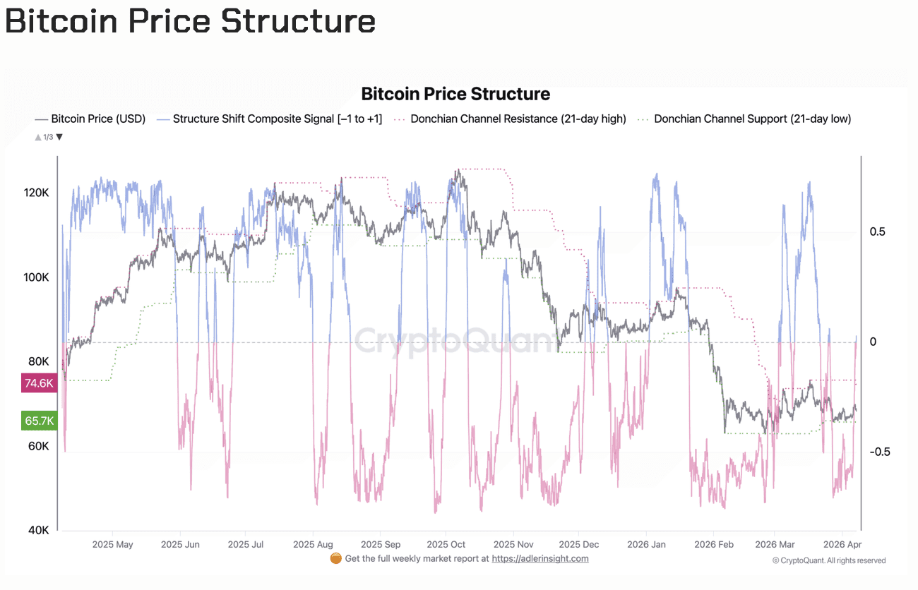 Dennoch fehlen die Grundlagen für einen echten Bullmarkt bislang. Ein anderer Indikator, der Structure Shift Composite Signal, der die Kursstärke anhand verschiedener Faktoren misst, steht laut Adler derzeit noch auf „neutral“. Sollte der Kursanstieg in den kommenden Wochen anhalten, könnte dieser Indikator auf „positiv“ umschlagen.