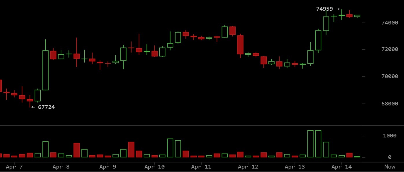 Seit dem Bericht hat Bitcoin jedoch zugelegt und notiert zum Zeitpunkt der Erstellung dieses Artikels bei rund 74.592 US-Dollar, wobei es wiederholt den Widerstand nahe 75.000 US-Dollar testet, was auf einen sich abzeichnenden Ausbruchversuch hindeutet.
