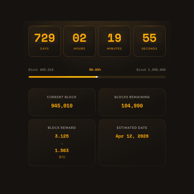 Der Countdown zur nächsten Bitcoin-Halving steht nun bei der Hälfte. Ungefähr 105.000 Blöcke verbleiben, bevor die Belohnung für Miner erneut halbiert wird. Die aktuelle Halving-Zyklus, der im April 2024 begann, ist damit zu etwa 50 Prozent abgeschlossen.