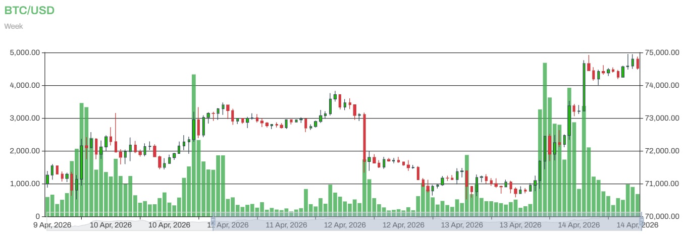 Bitcoin verzeichnete in den letzten 24 Stunden einen Anstieg von mehr als 6 % von einem Tiefststand von 70.588,52 $ auf einen Höchststand von 74.933,51 $. Dies führte dazu, dass der Vermögenswert mit seinen 20,01 Millionen im Umlauf befindlichen Einheiten wieder einen Marktwert von 1,5 Billionen USD erreichte.