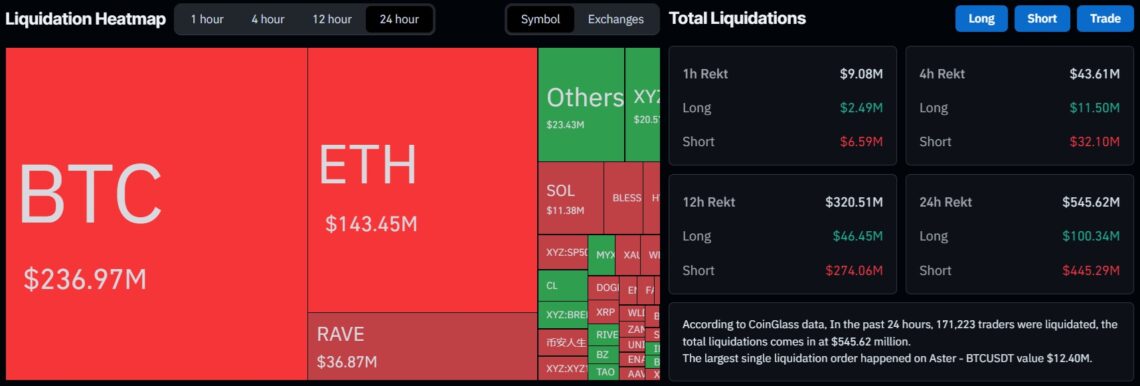 Liquidationen auf dem Kryptomarkt (Quelle: Coinglass)