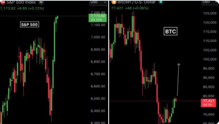 Vor diesem Hintergrund hinkt ein Asset auffällig hinterher. Bitcoin bleibt etwa 40 % unter seinem Allzeithoch, selbst als US-Aktien neue Rekorde aufstellen. Diese Divergenz hat die Aufmerksamkeit von Krypto-Analysten auf sich gezogen, die argumentieren, dass Bitcoin angesichts der Entwicklung des Aktienmarktes logisch in Richtung 90.000 bis 95.000 Dollar liegen sollte.
