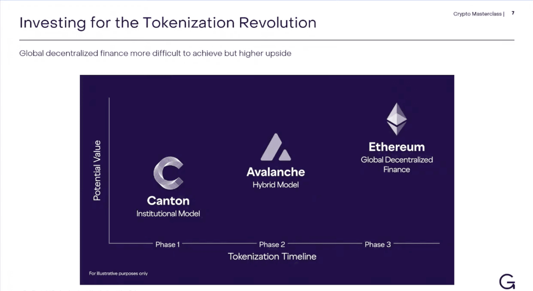 Die zweite Phase der Tokenisierung könnte ein hybrides Modell sein, bei dem wir sowohl institutionseigene Blockchains als auch einen globalen gemeinsamen Zustand haben, wobei diese Netzwerke miteinander verbunden sind und miteinander kommunizieren. Ein Beispiel dafür ist Avalanche (AVAX), mit Hunderten von souveränen, unternehmensweiten Chains (sogenannten Subnets), die live sind, aber mit einem primären Layer-1-Netzwerk verbunden sind.
