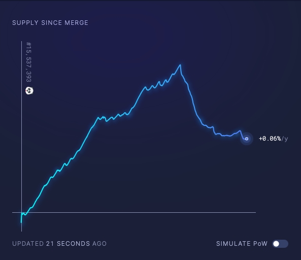 Mit der Umstellung von PoW auf PoS hat sich auch die Tokenomics bei Ethereum verändert. Nun gab es erstmals Deflation im Ethereum-Netzwerk. Der Total Supply von ETH sinkt seit rund einer Woche. Nach einer kurzen Konsolidierung scheint der deflationäre Effekt erneut auf den Token-Bestand durchzuschlagen. Mittelfristig könnte somit auch das sinkende Angebot bei gleichbleibender (oder eher steigender) Nachfrage den Ethereum Kurs antreiben.