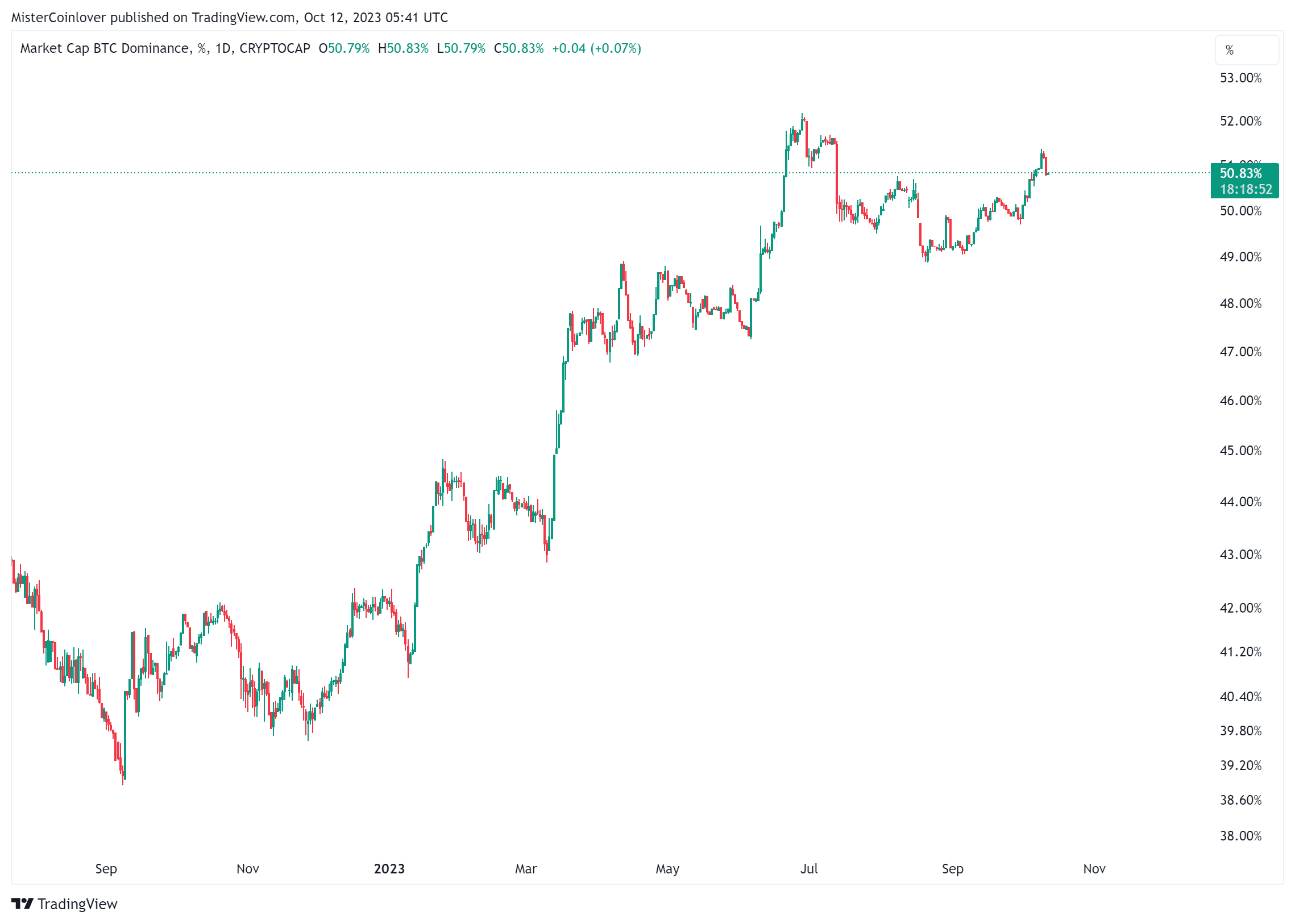 Die Bitcoin-Dominanz bemisst aktuell 50,83% und nähert sich damit seinem Hoch aus Ende Juni. Doch ist das wirklich ein Grund, um an Ethereum zu zweifeln, oder vielmehr der natürliche Kreislauf der Liquidität am Markt der Kryptowährungen?