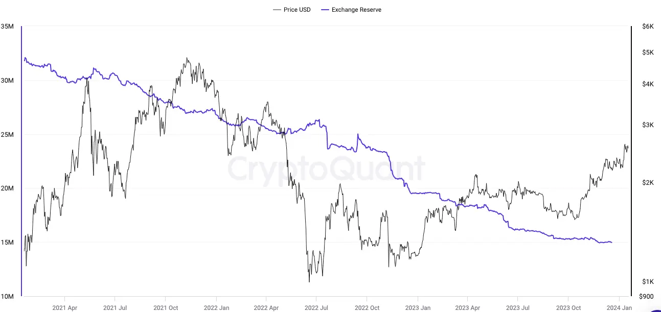 - Ethereum-Börsen-Bestände nähern sich Rekordtief