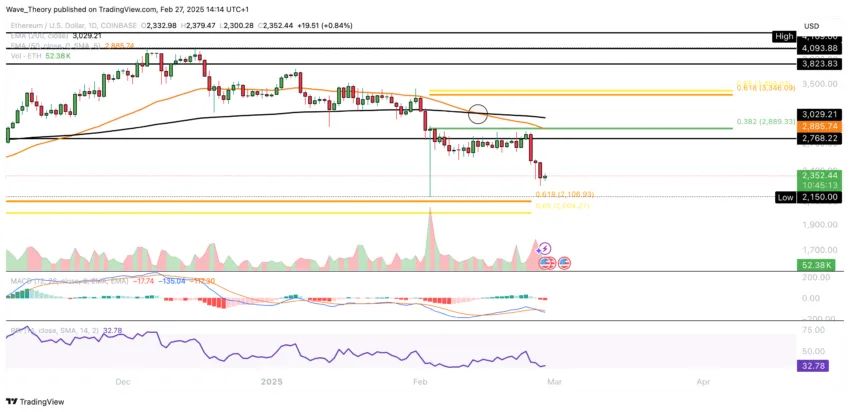 Morgen ist der letzte Tag des Februars. Bisher ist Ethereum in diesem Monat über 35 % im Kurs gefallen.