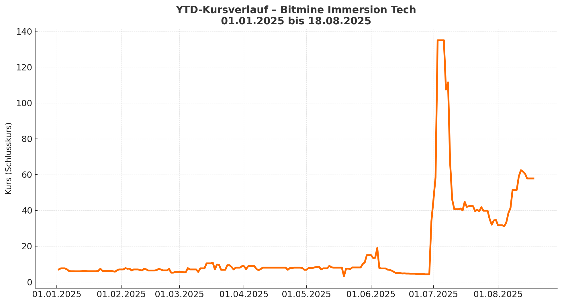 Bit Digital ist ein weiterer Spieler, der sich in kurzer Zeit eine große Ether-Reserve aufgebaut hat. Das NASDAQ-notierte Unternehmen war ursprünglich auf Bitcoin-Mining fokussiert, schwenkte jedoch im zweiten Quartal 2025 komplett auf Ethereum um. Binnen weniger Monate schnellte der ETH-Bestand von ca. 30.600 auf 121.000 ETH in die Höhe. Dieser Vorrat hat aktuell einen Wert von über einer halben Milliarde US-Dollar. Bit Digital beendete seine Bitcoin-Mining-Aktivitäten zugunsten von Ethereum-Staking und -Treasury-Management. Obwohl diese strategische Neuausrichtung am Aktienmarkt bislang nur verhalten honoriert wurde (der Aktienkurs legte seit Jahresbeginn um rund 2,6 Prozent zu), zählt Bit Digital nun zu den größten Unternehmen mit Ethereum-Reserven weltweit. Das Unternehmen bietet Investoren somit die Möglichkeit, über eine traditionelle Aktie indirekt am Ethereum-Erfolg teilzuhaben, inklusive der Staking-Erträge aus den Ether-Beständen.