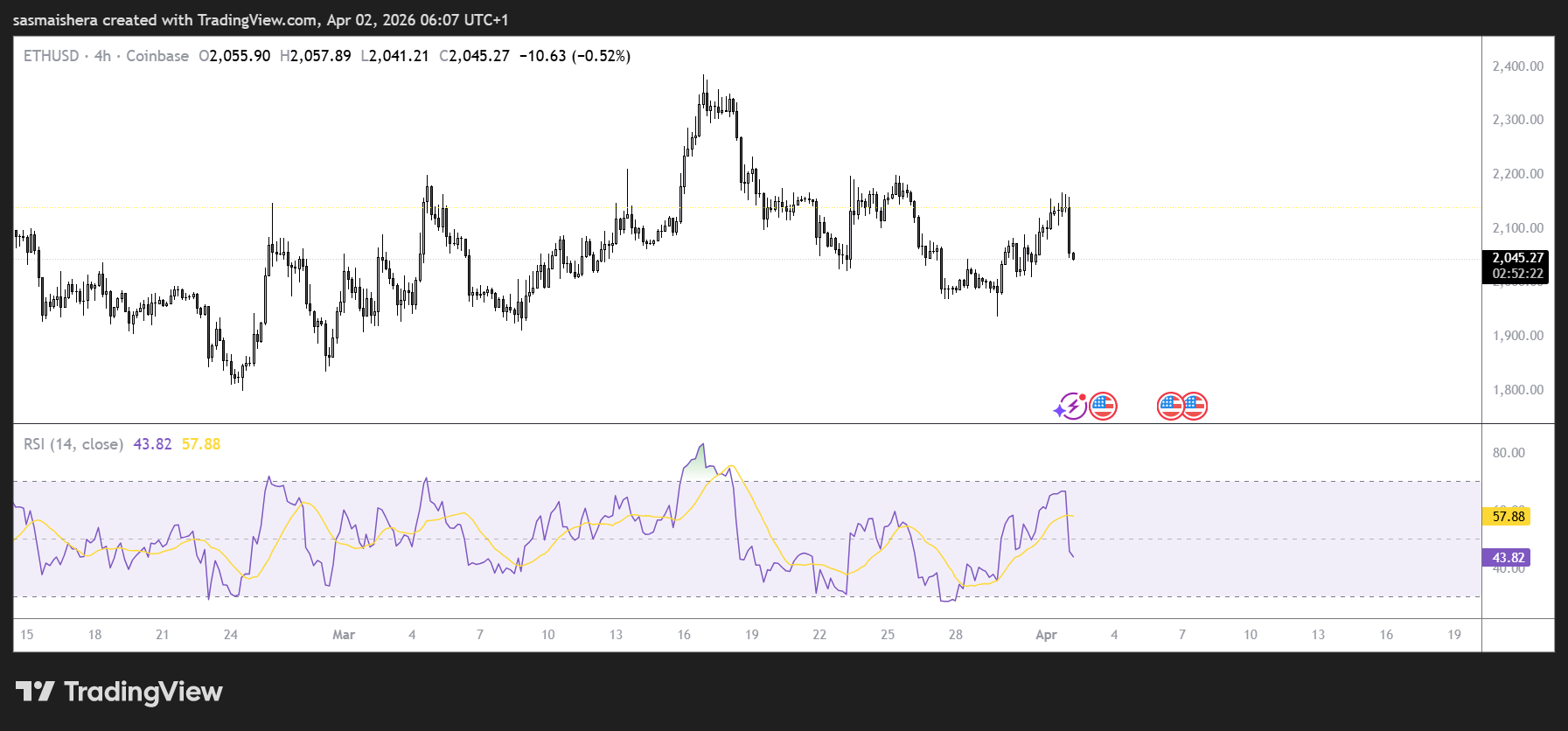 Die kurzfristige Tendenz ist leicht bullisch, auch wenn der Preis unter den 20‑Tage‑Exponential‑Moving‑Average (EMA) bei rund $2,085 fällt und sich nach dem jüngsten Rücksetzer stabilisiert.