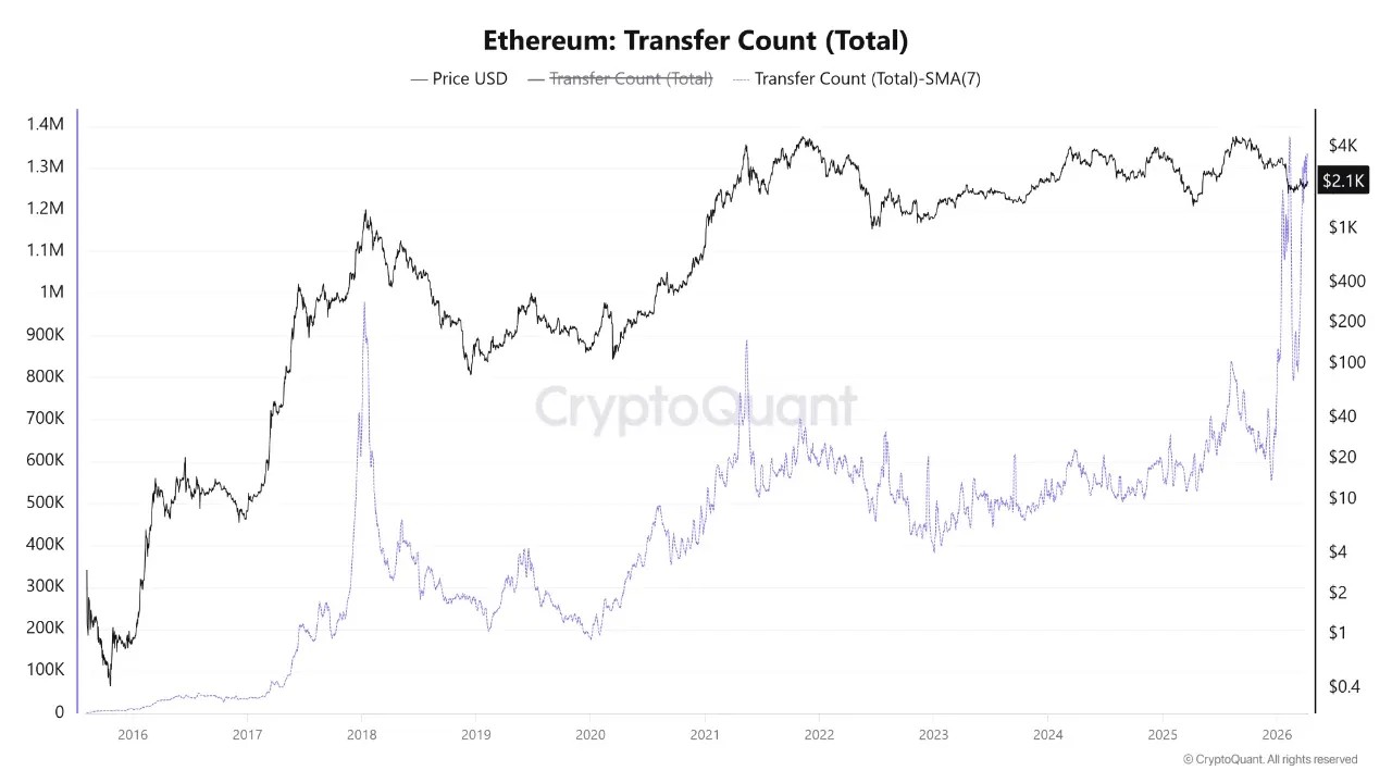 Die Anzahl der Transaktionen hat ein neues Allzeithoch erreicht. Der gleitende 7-Tage-Durchschnitt liegt wieder über 1,3 Millionen Transfers pro Tag. Das bedeutet, dass das Netzwerk stärker genutzt wird als je zuvor. Diese Aktivität kommt nicht aus Spekulation, sondern aus realer Nutzung. DeFi Anwendungen, Layer-2-Lösungen und tokenisierte Assets treiben die Nachfrage.