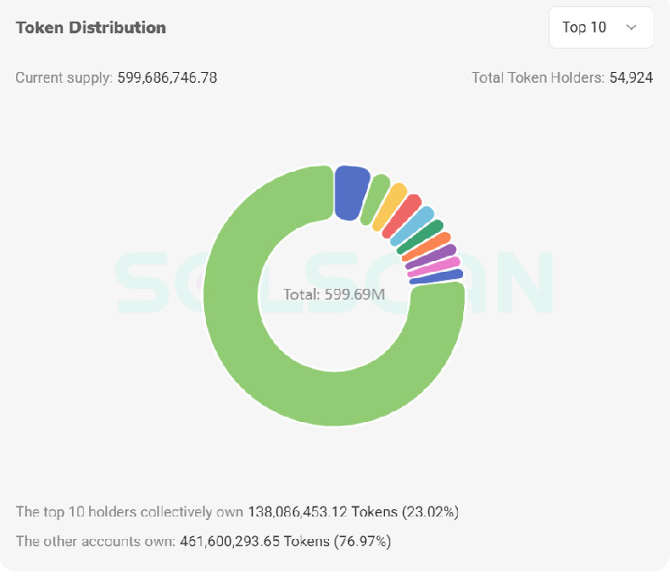 Trotz des Vorwurfs des Insiderhandels deuten die Daten darauf hin, dass ein Großteil des Token-Angebots in wenigen Wallets konzentriert ist. So verfügen beispielsweise die zehn größten DADDY-Inhaber über 23,02 % des Token-Angebots.