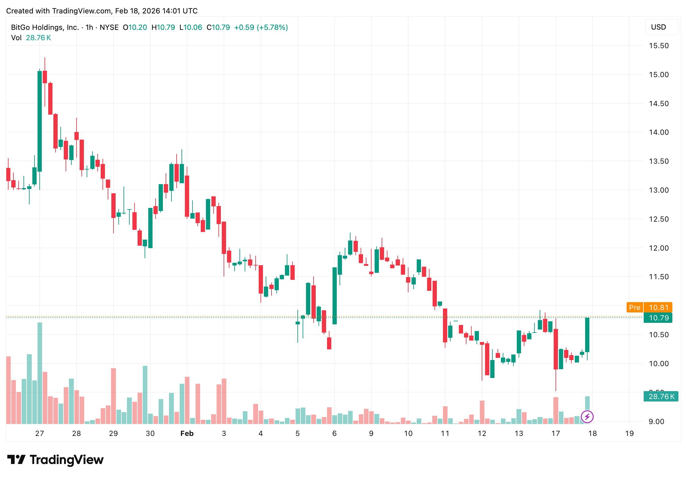In einer Mitteilung vom 17. Februar nahmen die Mizuho-Analysten Dan Dolev und Alexander Jenkins die Berichterstattung über Bitgo Holdings Inc. (NYSE: BTGO) auf, mit einem Kursziel, das einen Anstieg von etwa 50 % bis 60 % gegenüber dem jüngsten Schlusskurs der Aktie von 10,87 USD impliziert. Die Prognose kommt zu einem Zeitpunkt, an dem die Aktie nach dem Börsengang des Unternehmens weiterhin unter Druck steht und laut tradingview.com einen historischen Kursverlust von rund 50 % verzeichnet.