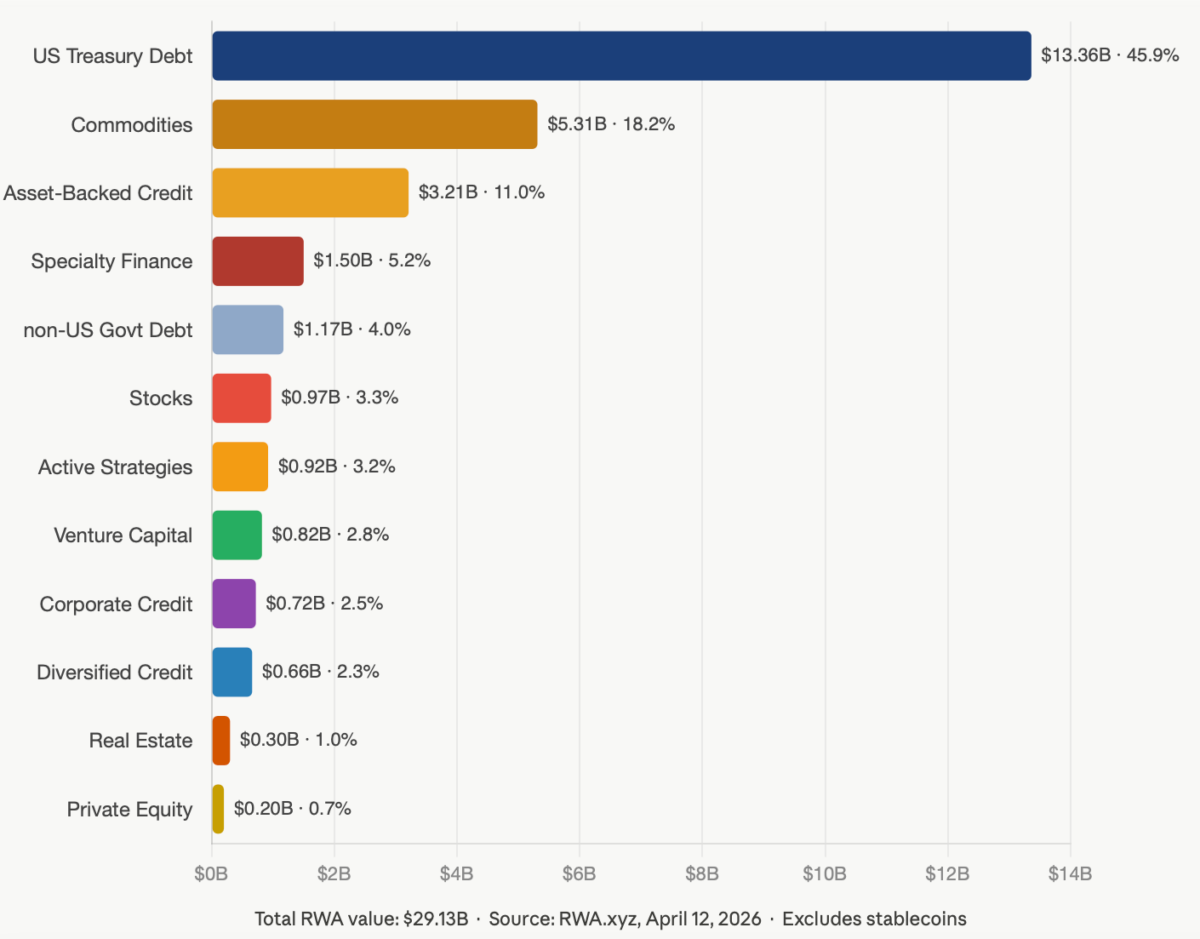 Betrachtet man die Aufteilung nach Anlageklassen, dominieren US-Staatsanleihen fast die Hälfte des gesamten Marktes. Rohstoffe, allen voran tokenisiertes Gold, folgen mit über 5 Milliarden US-Dollar, während Asset-Backed Securities und Private Credit zusammen einen bedeutenden Anteil am verbleibenden Volumen ausmachen.