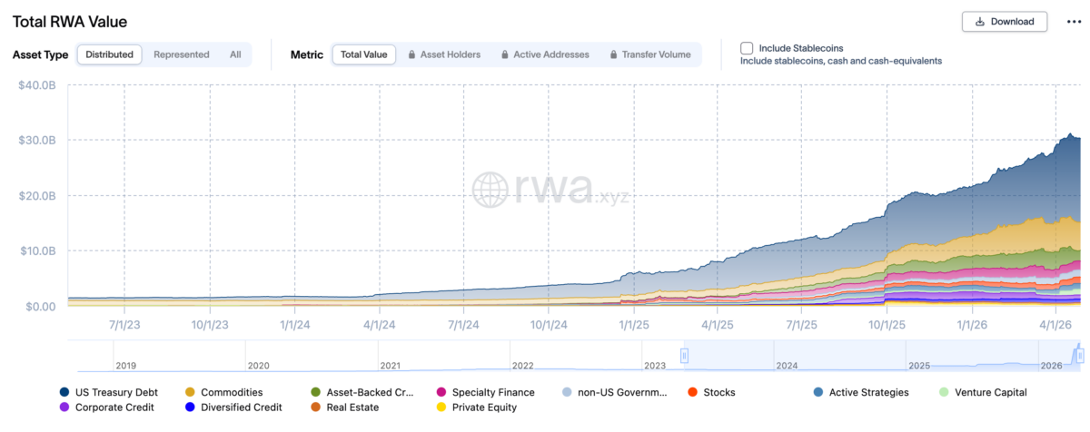 Der Markt für On-Chain-tokenisierte Real-World Assets erreichte im März 2026 rund 26.4 Milliarden USD und wuchs damit innert Jahresfrist um etwa 300%. Tokenisierte US-Staatsanleihen machen davon rund 12.88 Milliarden USD aus und bilden das mit Abstand grösste Segment. Prognosen verschiedener Investmentbanken reichen von 16 bis 30 Billionen USD bis 2030. Diese Schätzungen unterscheiden sich erheblich in ihren Methodiken.