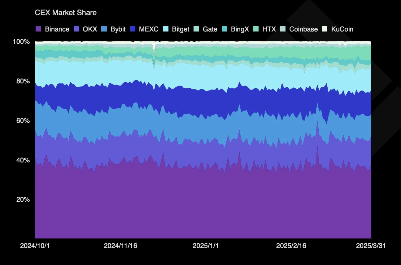 Dennoch verzeichnete die Börse ein starkes 1. Quartal 2025, da ihr Handelsvolumen weiterhin ein Drittel des CEX-Marktes ausmachte.
