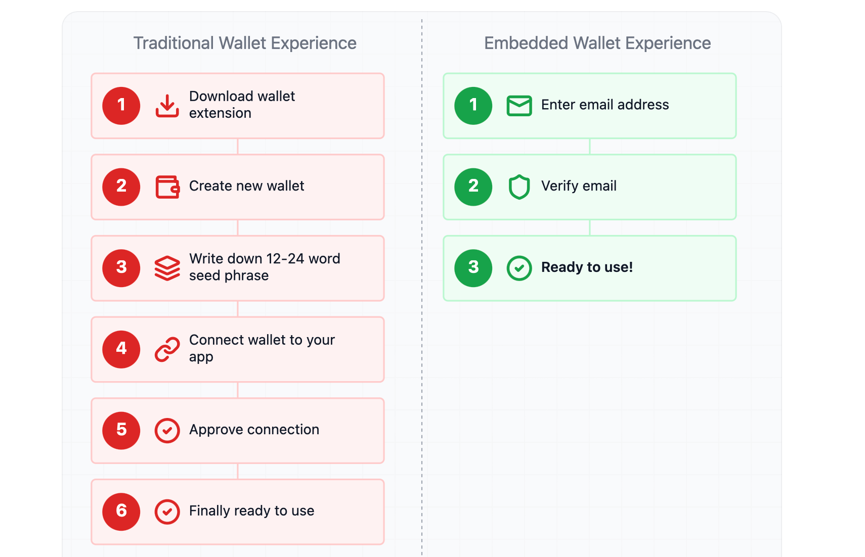 Die Netzwerkabdeckung wurde ebenfalls erweitert. Embedded Wallets unterstützen nun Solana neben EVM-Ketten wie Base und Ethereum, was den Entwicklern Flexibilität bei der Bereitstellung von Zahlungen, Belohnungen oder Handelsabläufen bietet.