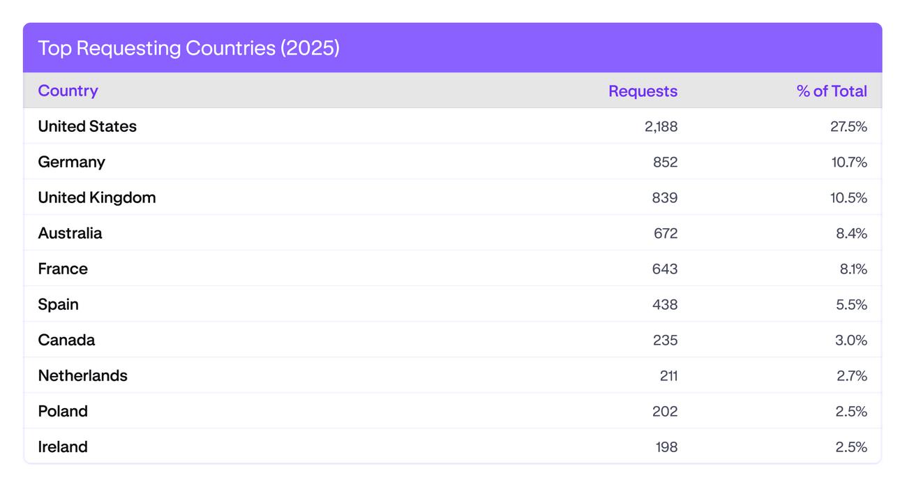 13.082 Konten wollten die Behörden durchleuchten. Die meisten der Nutzer stammen aus den USA (27,8 Prozent), gefolgt von Großbritannien (11,3 Prozent) und Deutschland (6,2 Prozent).