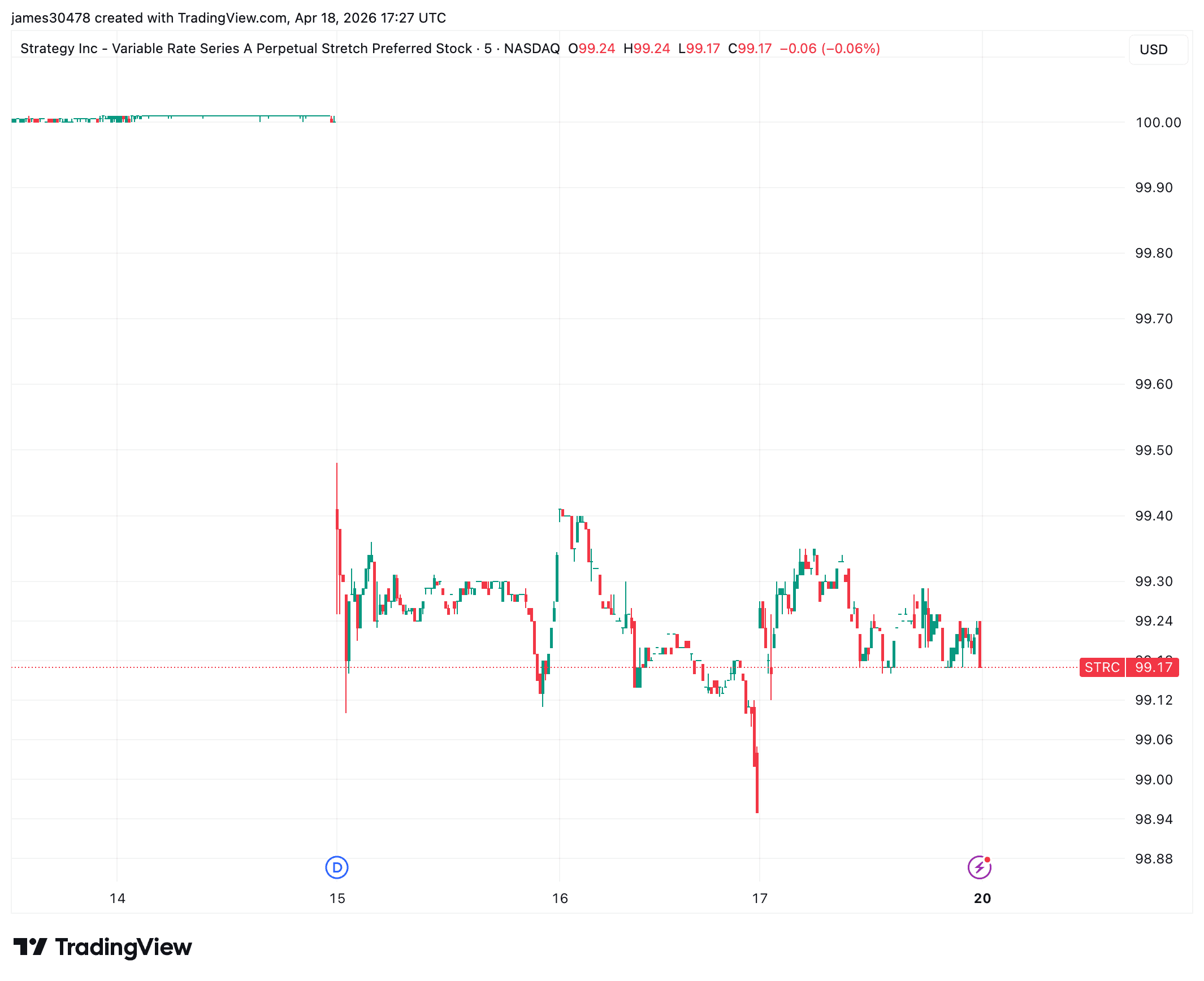 STRC fiel nach dem Ex-Dividendendatum am 15. April kürzlich unter 99 USD, ein Rückgang von mehr als 1 USD, was die Volatilität ist, die das Unternehmen verringern möchte.
