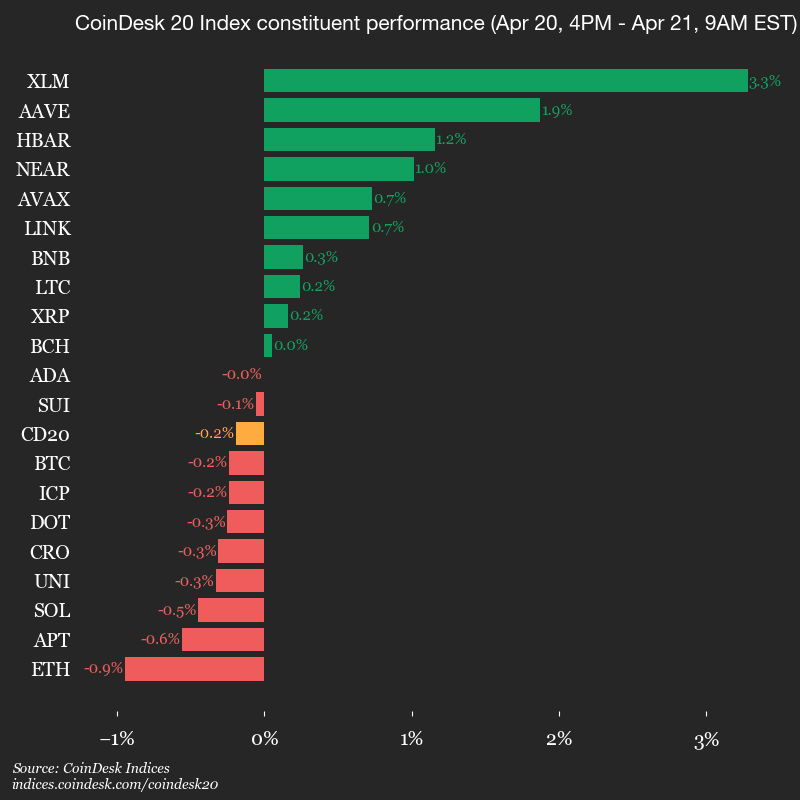 Gewinner: XLM (+3,3 %) und AAVE (+1,9 %).