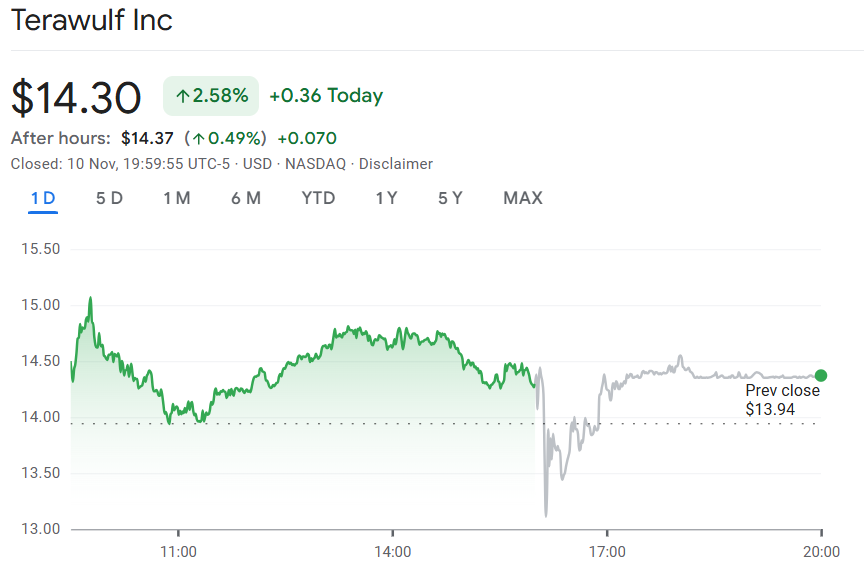 — TeraWulf (@TeraWulfInc) November 10, 2025