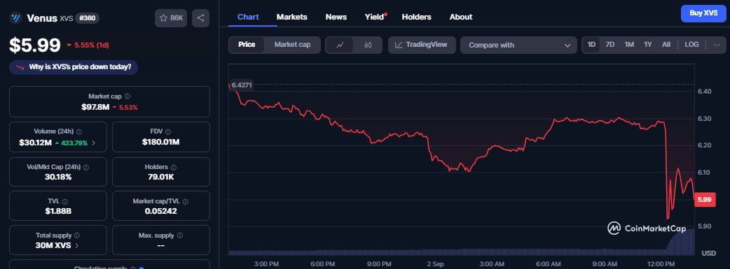XVS wird bei 5,99 $ mit einem überwältigenden Verkaufsdruck gehandelt.