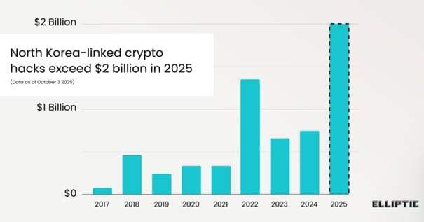 2025 ist bisher das Jahr mit der höchsten Beute durch nordkoreanische Gruppen. Quelle: Elliptic