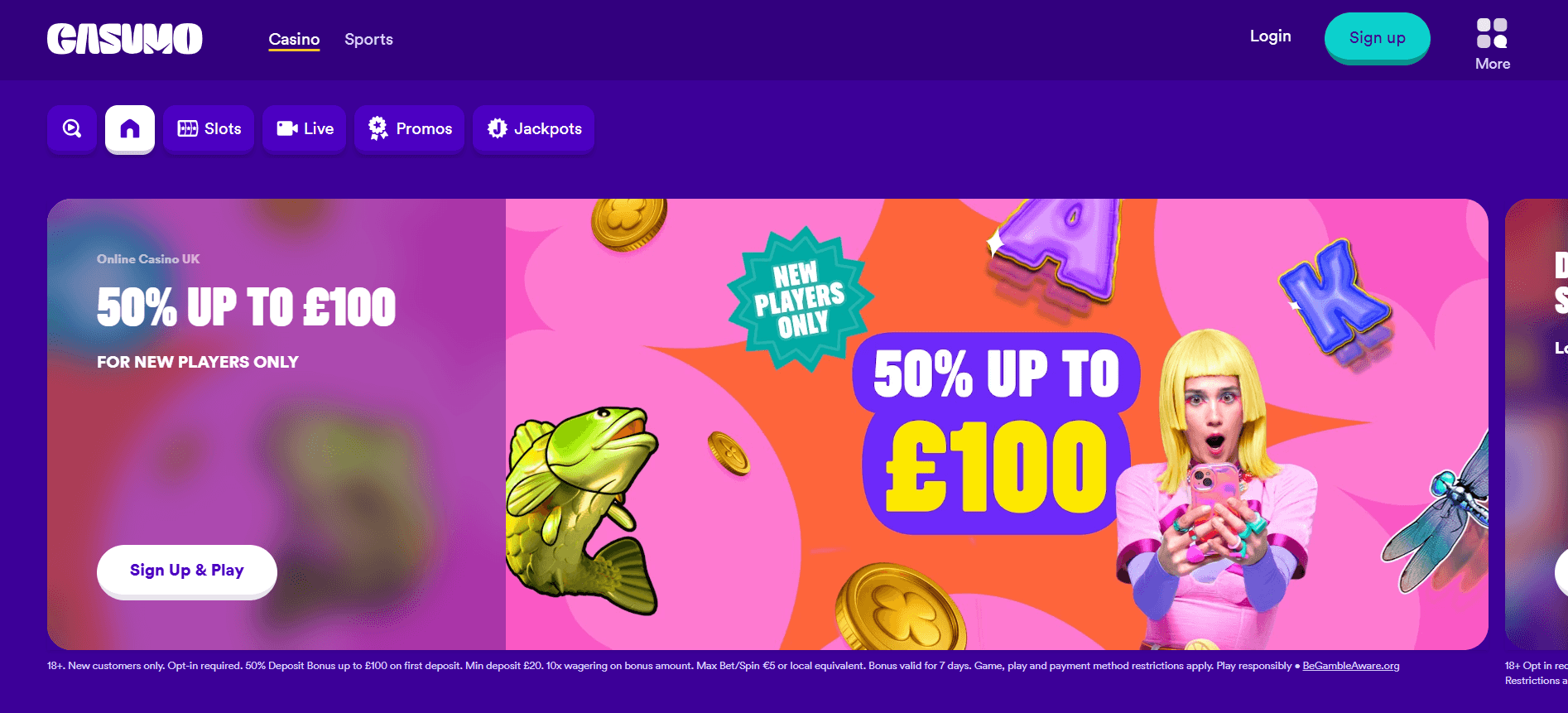 The middle child of the bunch, coming from a 2012 launch, Casumo is a UK-licensed casino known for being easy to navigate and packed with games. It offers thousands of slots, live casino tables, jackpots, table games, and a sportsbook, all powered by major providers like NetEnt, Play’n GO, and Evolution.