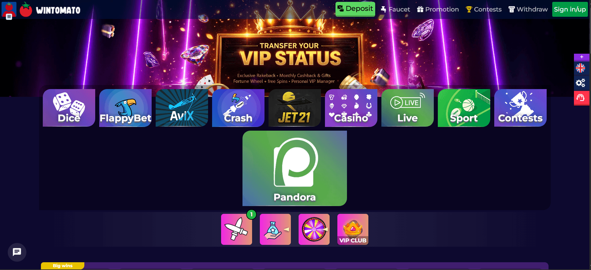 Wintomato, launched in 2021, offers over 3,000 games, 30+ providers, and support for 20+ cryptocurrencies. It’s a community-style casino, with regular contests, faucet rewards, and ongoing promos to keep players playing.