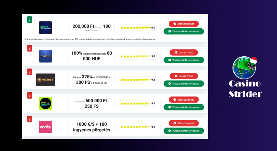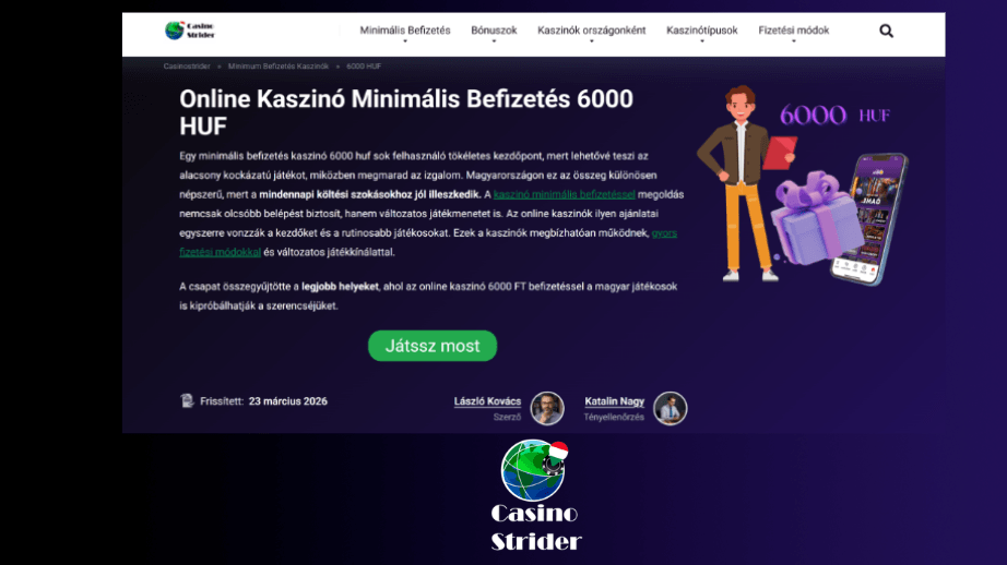 A 6000 forint casino bankroll suits players who treat gambling as entertainment rather than income. It works well for beginners and recreational players who want a defined, controlled session without financial risk. On CasinoStrider, the best 6000 HUF casino options are always vetted. Among 6000 HUF kaszinók platforms, minimum deposits typically range between 1,000 and 2,000 HUF, making this budget compatible with most Hungarian online casinos.