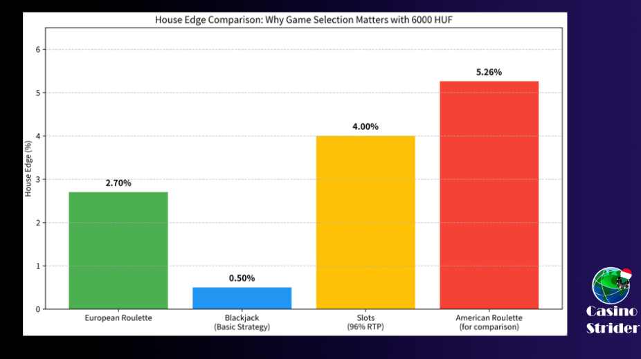 From László Kovács’ personal experience: In my years of analyzing thousands of sessions with small bankrolls like 6000 HUF, I’ve repeatedly seen that even a 1–2% difference in house edge can add 30–40 extra minutes of playtime. That’s why I always tell players: choose the game first, then the table — never the other way around.