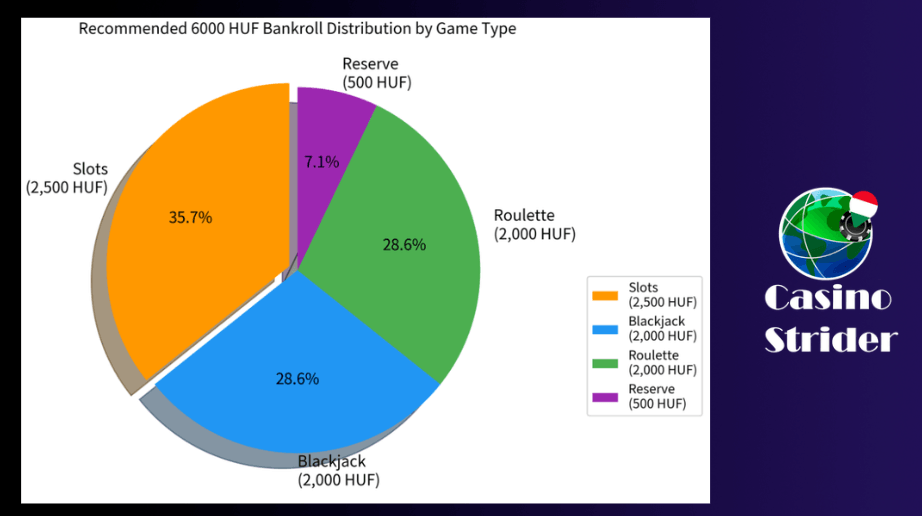 Kovács’ bankroll split by game type allocates 2,500 HUF to slots, 2,000 HUF to blackjack, 2,000 HUF to roulette, and 500 HUF in reserve. Players who prefer one game can consolidate, for example, three blackjack sessions of 2,000 HUF each. The model works because every bet size and exit point is decided before play begins.