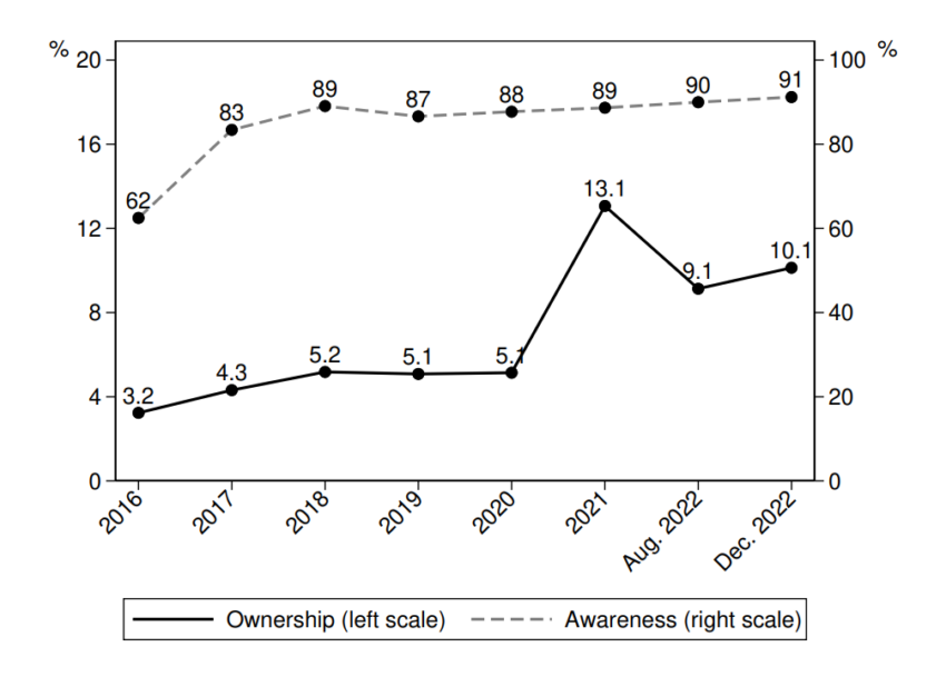 The BoC data reveal a stalling of crypto adoption after the massive growth and market upswings seen in 2021.