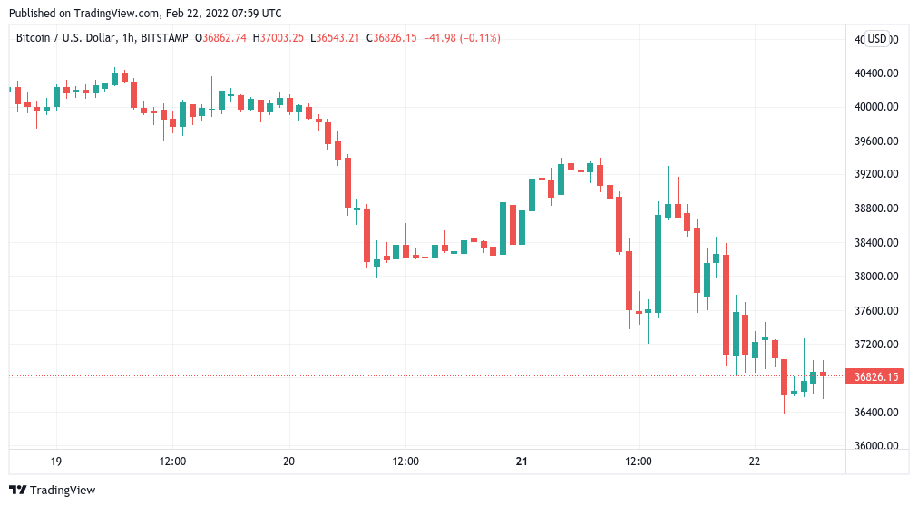 Data from Cointelegraph Markets Pro and TradingView showed BTC/USD reaching $36,400 on Bitstamp overnight Tuesday, its lowest since Feb. 3.