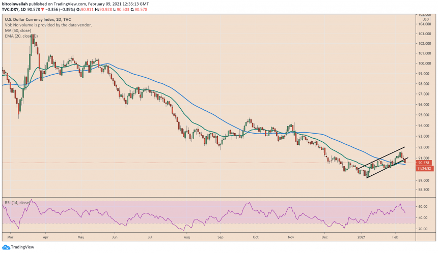 US dollar index breaks bearish on its ascending channel, raising prospects of a negative breakout. Source: DXY on TradingView.com