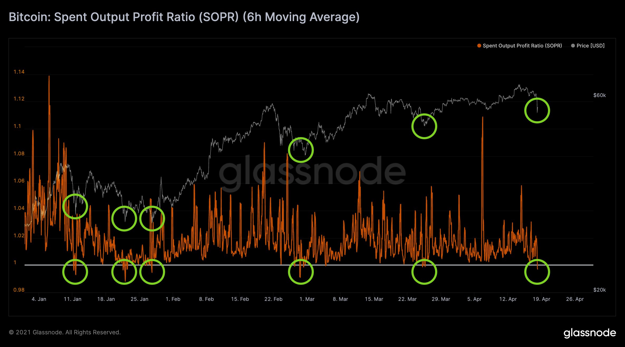 The spent transaction output ratio (SOPR), which measures overall profit and loss, had "reset" for the first time since after March's all-time highs of $61,700.