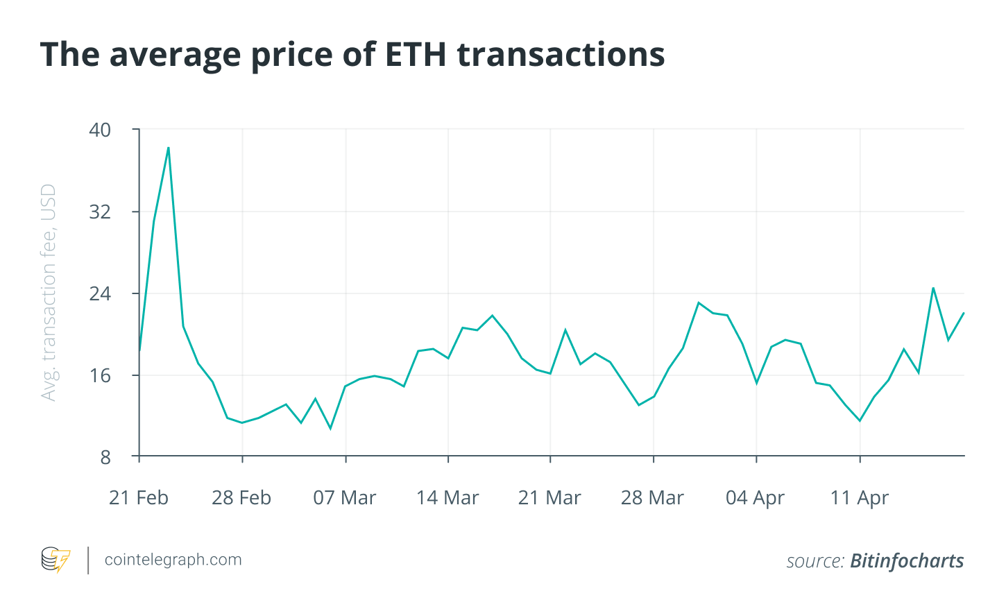 To put things into perspective, since the second half of February, the average cost of facilitating transactions on the Ethereum ecosystem has continued to hover above the $16–$20 range, making it quite impractical for individuals looking to facilitate smaller transactions to make use of the platform. In fact, on Feb. 23, the above-stated fee value shot up to an all-time high of $42, thereby drawing the ire of the crypto community at large.