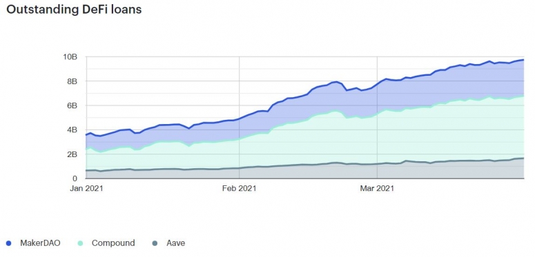 Tuesday night, the original DeFi protocol, stablecoin minter MakerDAO, also broke $10 billion for the first time.