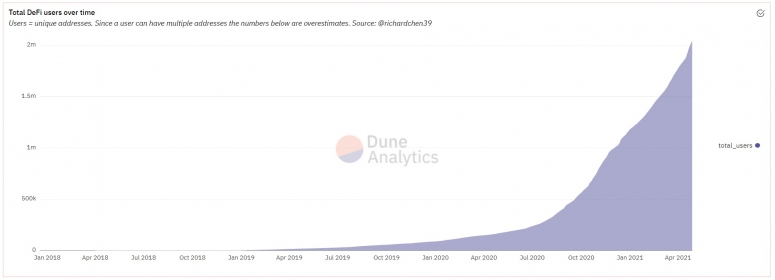 This shows there are at least 2 million wallets that have interacted with DeFi protocols. So that probably means something like over a million individuals, maybe even close to two? It’s very hard to say, but it is also worth noting that sometimes individuals participate in DeFi via third parties. So while some users hold many wallets, it’s also true that some wallets represent many users.