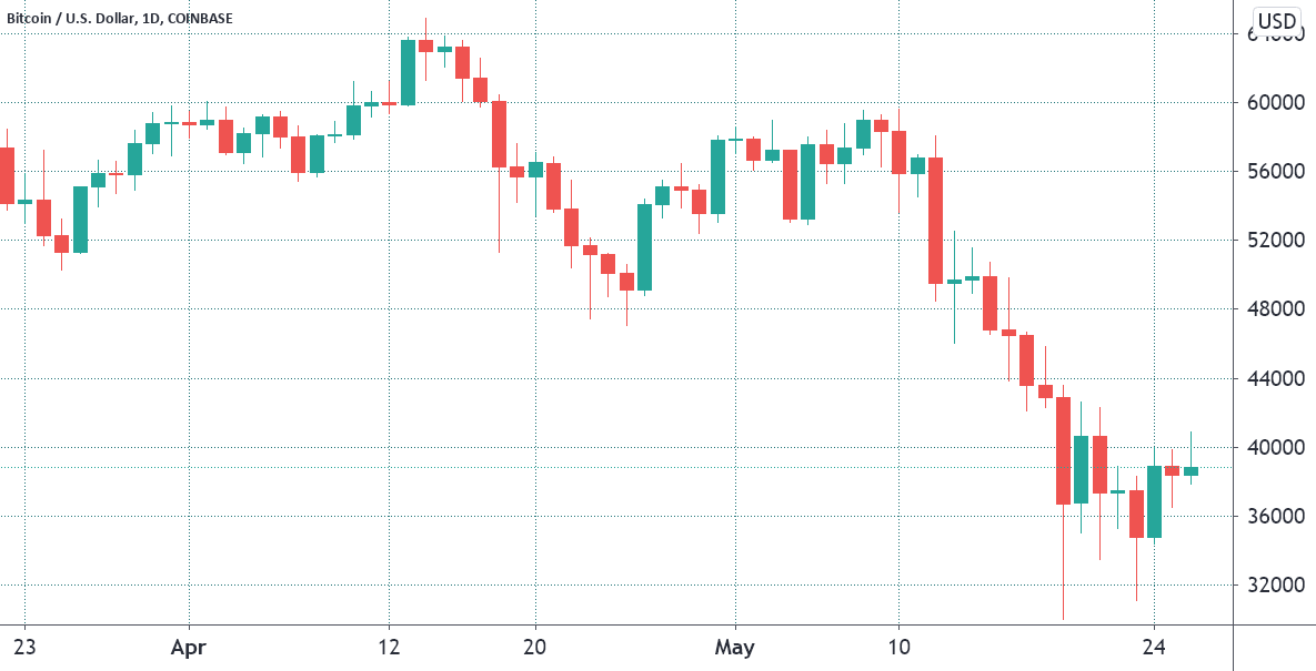 On May 23, the Huobi exchange reportedly suspended futures trading in mainland China causing further havoc and pushing Bitcoin below $32,000.