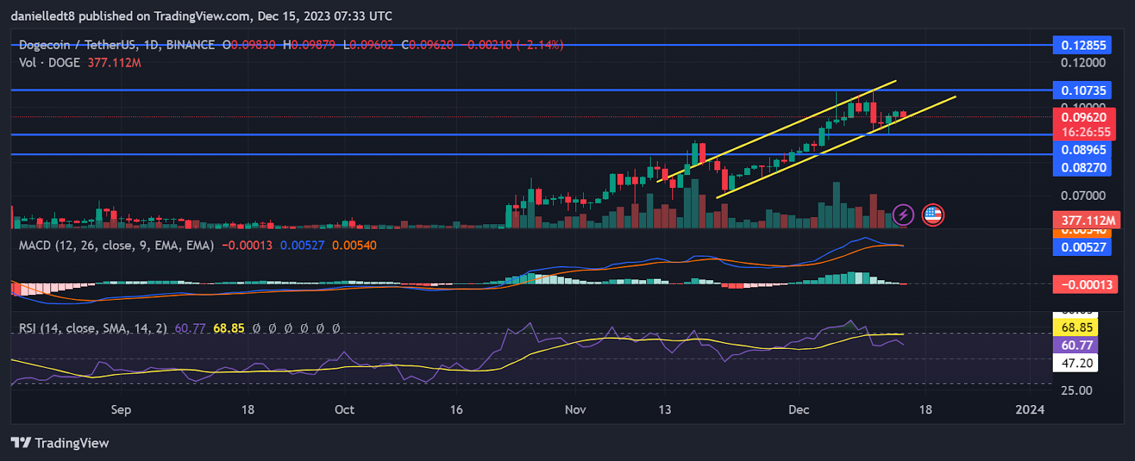 If $DOGE can close today’s daily candle within the positive price channel, then bulls may step in to drive the cryptocurrency’s value up in the following few days. This potential buy pressure could lead to $DOGE rising to as high as $0.10735, and potentially flip the level into support as well.