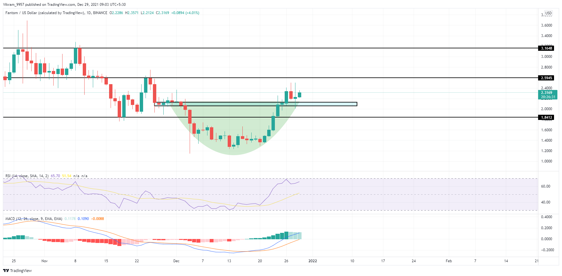 The retest of the rounding bottom breakout in the daily chart increases the chances of an enhanced bull. However, the FTM coin price needs to close above $2.5 to overcome the supply that caused the previous higher price rejection.