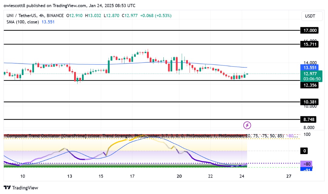 Uniswap is making a determined effort to bounce back, with bulls stepping up to defend the crucial $12.3 support level. This price point has become a pivotal battleground since it could pave the way for a potential recovery or signal further bearish momentum. The recent price action highlights growing buyer interest at this level, suggesting that market sentiment may be tilting cautiously in favor of the bulls.