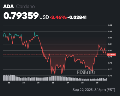 This outlook comes as ADA continues to trade in line with broader cryptocurrency market sentiment. As of press time, the asset was valued at $0.79, gaining over 3% in the past 24 hours, while on the weekly timeline, Cardano has corrected by about 3.4%.