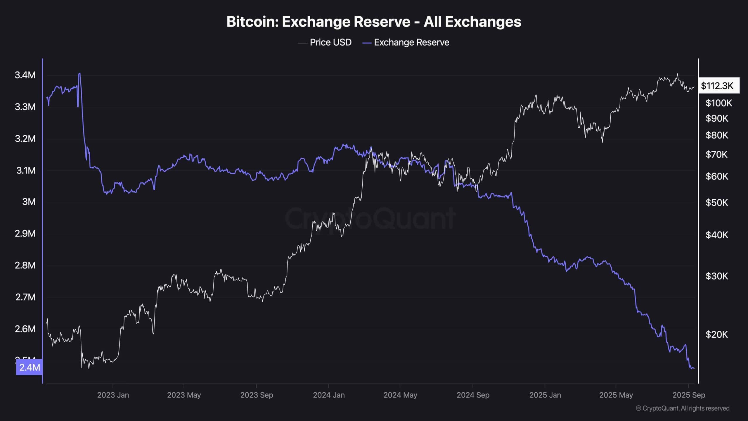 However, in the short term, declining reserves also mean thinner liquidity on exchanges. This can amplify volatility around key levels, making breakouts and breakdowns sharper. Overall, the reserve trend reinforces the long-term bullish case but doesn’t eliminate the near-term risk of corrections if buyers fail to reclaim resistance.