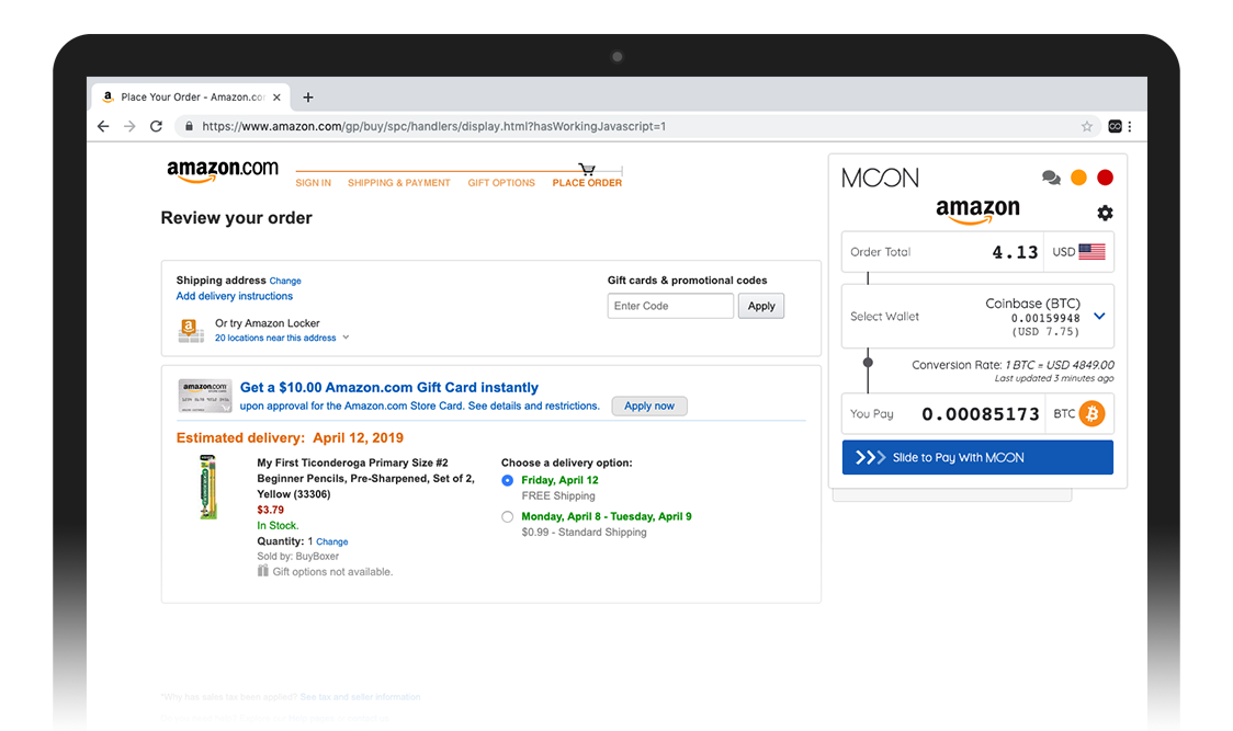 Moon’s team explains that in reality, Amazon has absolutely no stake in the transaction. Amazon demands a fiat amount and receives a fiat amount. It is Moon who takes care of the whole process behind the conversion from BTC to fiat.