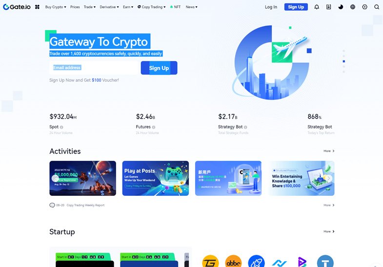 Gate.io: plataforma sólida con muchas monedas