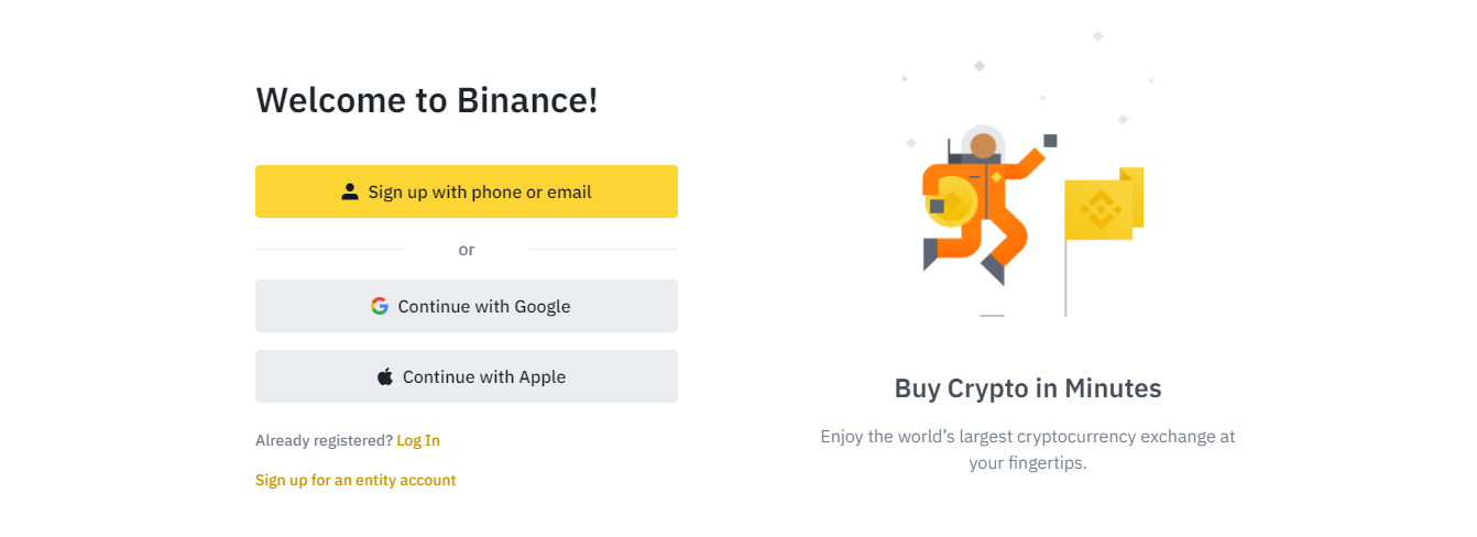 Binance permite a los inversores registrarse utilizando su teléfono móvil, dirección de correo electrónico o cuenta de Google. La mayoría de los usuarios eligen las dos primeras opciones y proporcionan sus números de teléfono, correos electrónicos y contraseñas deseadas. Se enviará un enlace a su canal de registro de elección, y los inversores pueden hacer clic en él para autenticar sus cuentas.